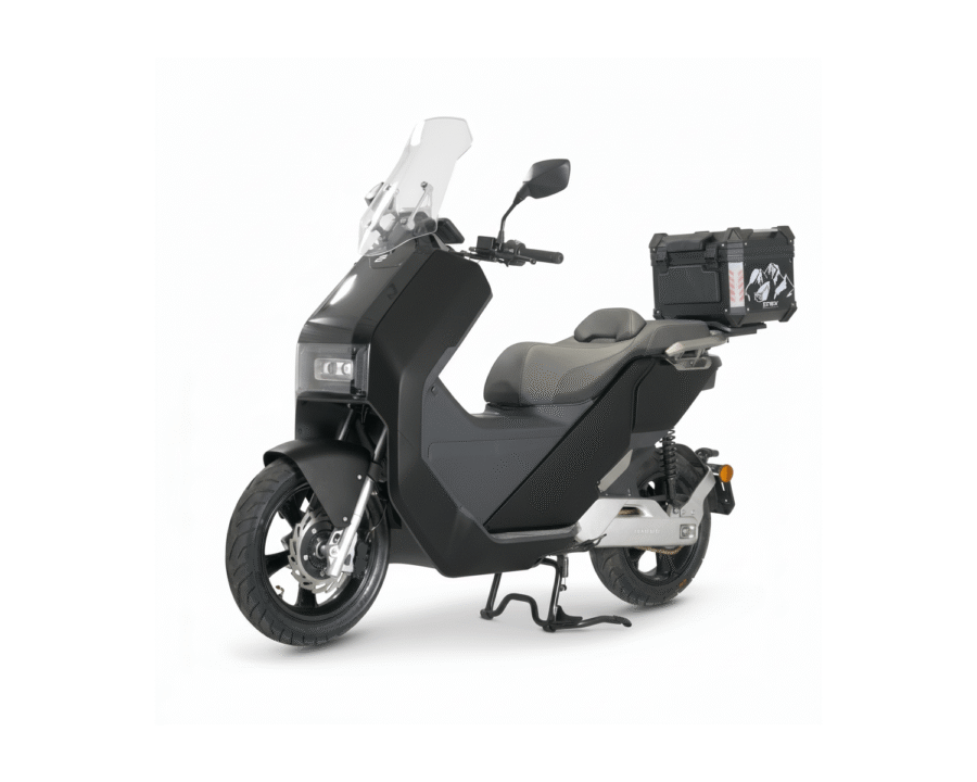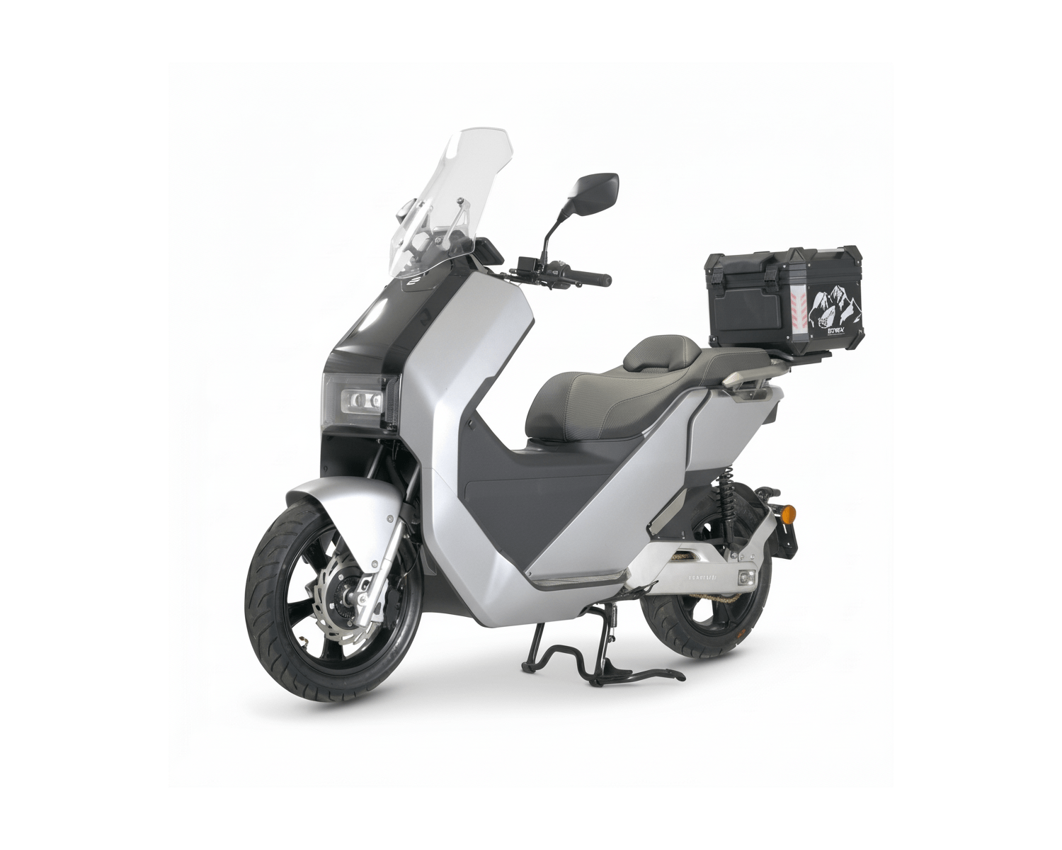 Spécial TCS Swiss-Edition Le E5 Swiss Edition est livré avec un pare-brise et un top case pour encore plus de confort de conduite, de sécurité et d'espace de rangement.
